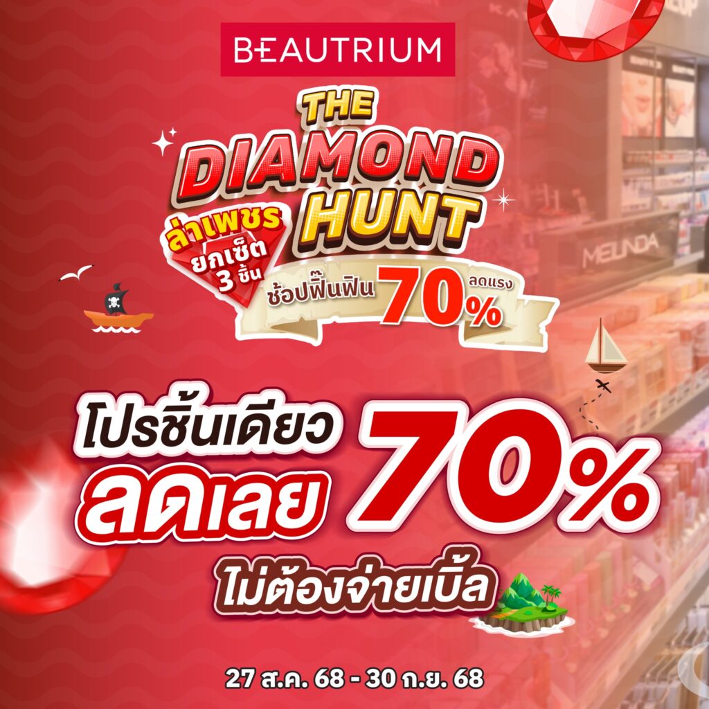 ถึงเวลาออกล่าโปรโมชันสุดคุ้ม! 💎 BEAUTRIUM The Diamond Hunt ช้อปฟิ๊นฟินลดแร๊งงงงส์ สูงสุด 70% 💥 ขนกล่องสมบัติความงามมาให้ช้อปทั้งเมคอัพ สกินแคร์ หลากหลายแบรนด์ดัง