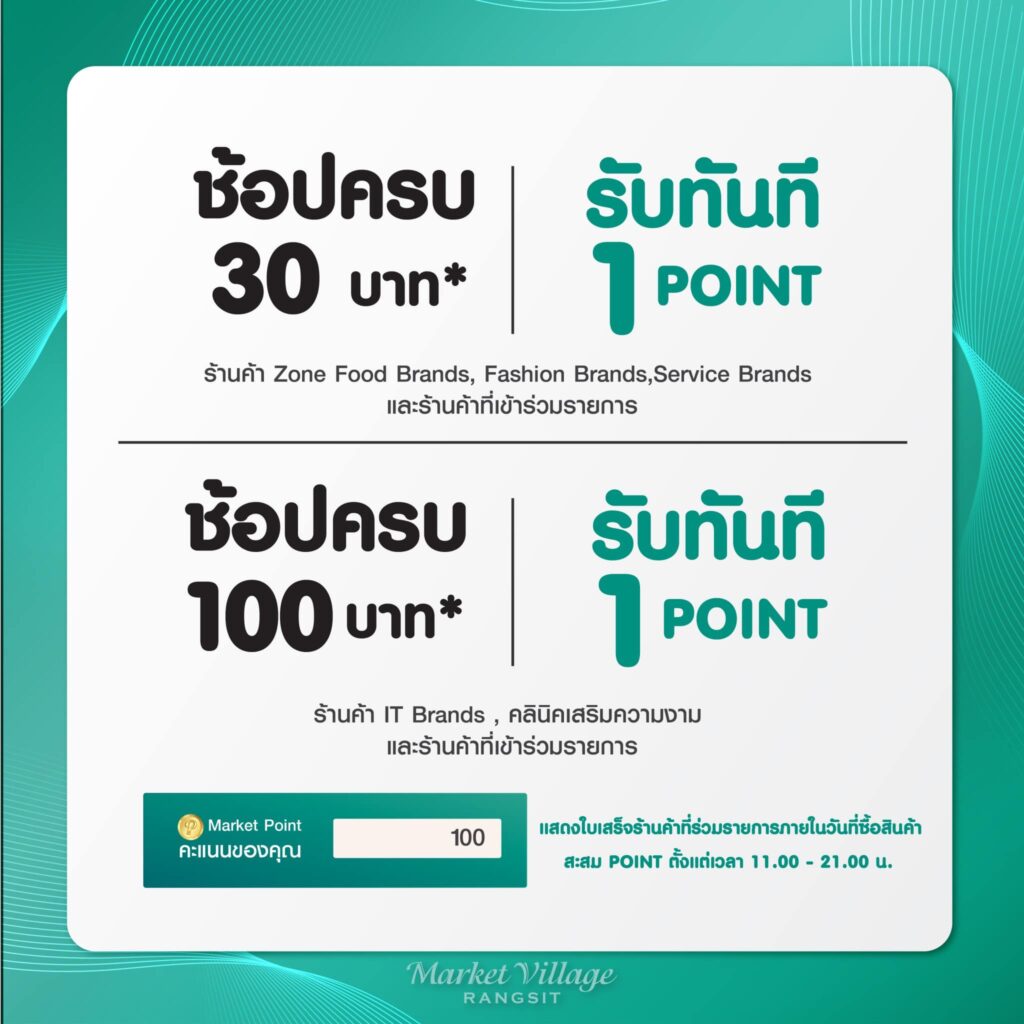 Market Village ชวนคุณร่วมเป็นสมาชิก “Market Point” พร้อมสิทธิพิเศษมากมายสุดคุ้ม เริ่มสะสมคะแนนได้ตั้งแต่วันที่ 10 เมษายนเป็นต้นไป เพียงช้อปสินค้าภายในศูนย์การค้า แล้วสะสมคะแนนจากยอดซื้อได้ทันที!