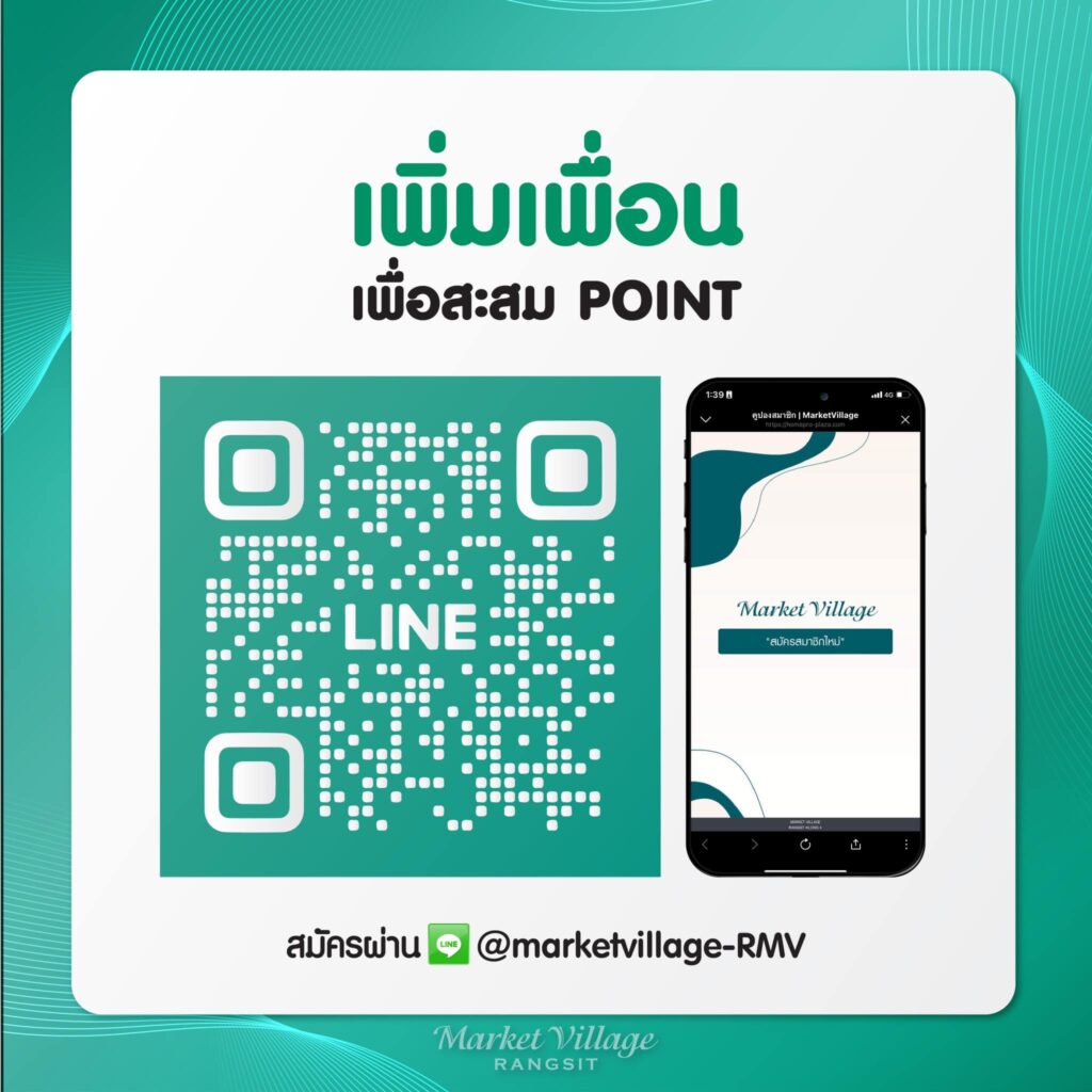 เพิ่มเพื่อนเพื่อสะสมคะแนนได้ที่ LINE ID: @marketvillage-rmv