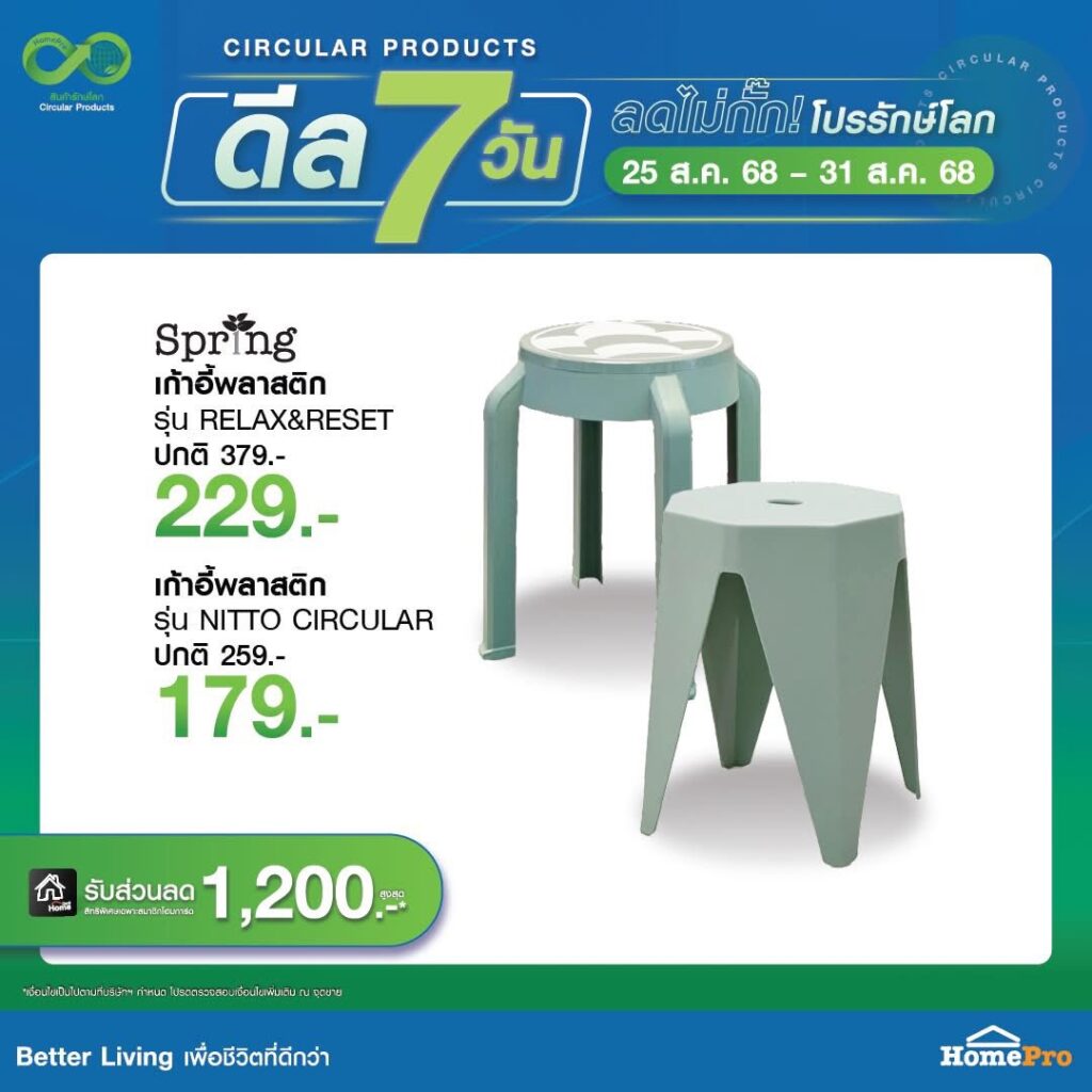 HomePro invites you to join hands in building a sustainable future through the “Circular Products” campaign – featuring eco-friendly products at special prices, with discounts up to 1,200 THB. Plus, enjoy extra savings for HomePro Visa Platinum Cardholders with an additional 3% + 2%* discount on selected eco-friendly items.