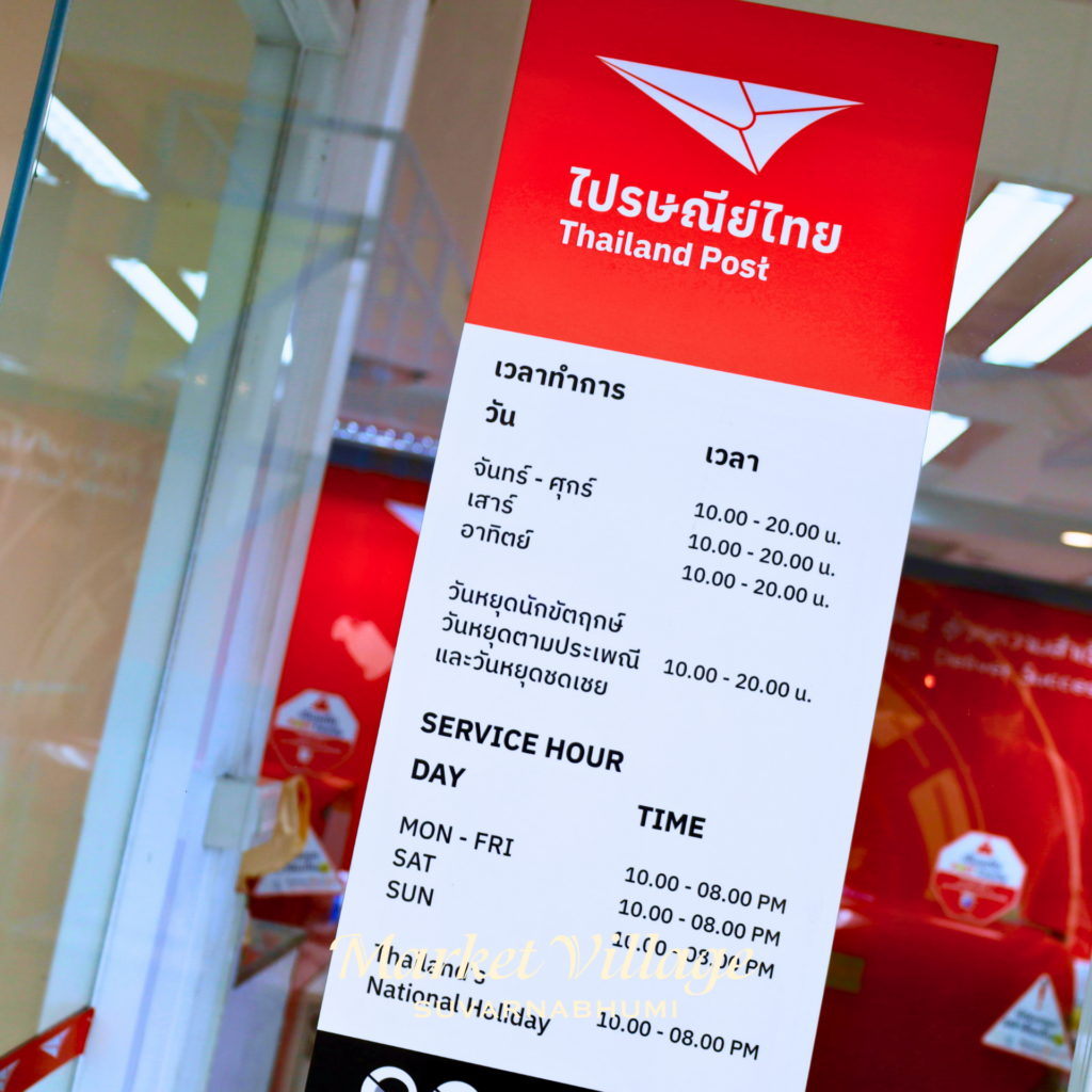 หากคุณต้องการส่งจดหมาย เอกสาร หรือพัสดุ ที่ Market Village สุวรรณภูมิ มีสาขาของ ไปรษณีย์ไทย ตั้งอยู่บนชั้น 1 เพื่ออำนวยความสะดวกให้คุณ ที่นี่คือจุดบริการที่สมบูรณ์แบบสำหรับทุกความต้องการด้านการส่งไปรษณีย์ ไม่ว่าจะเป็นการส่งในประเทศหรือต่างประเทศ